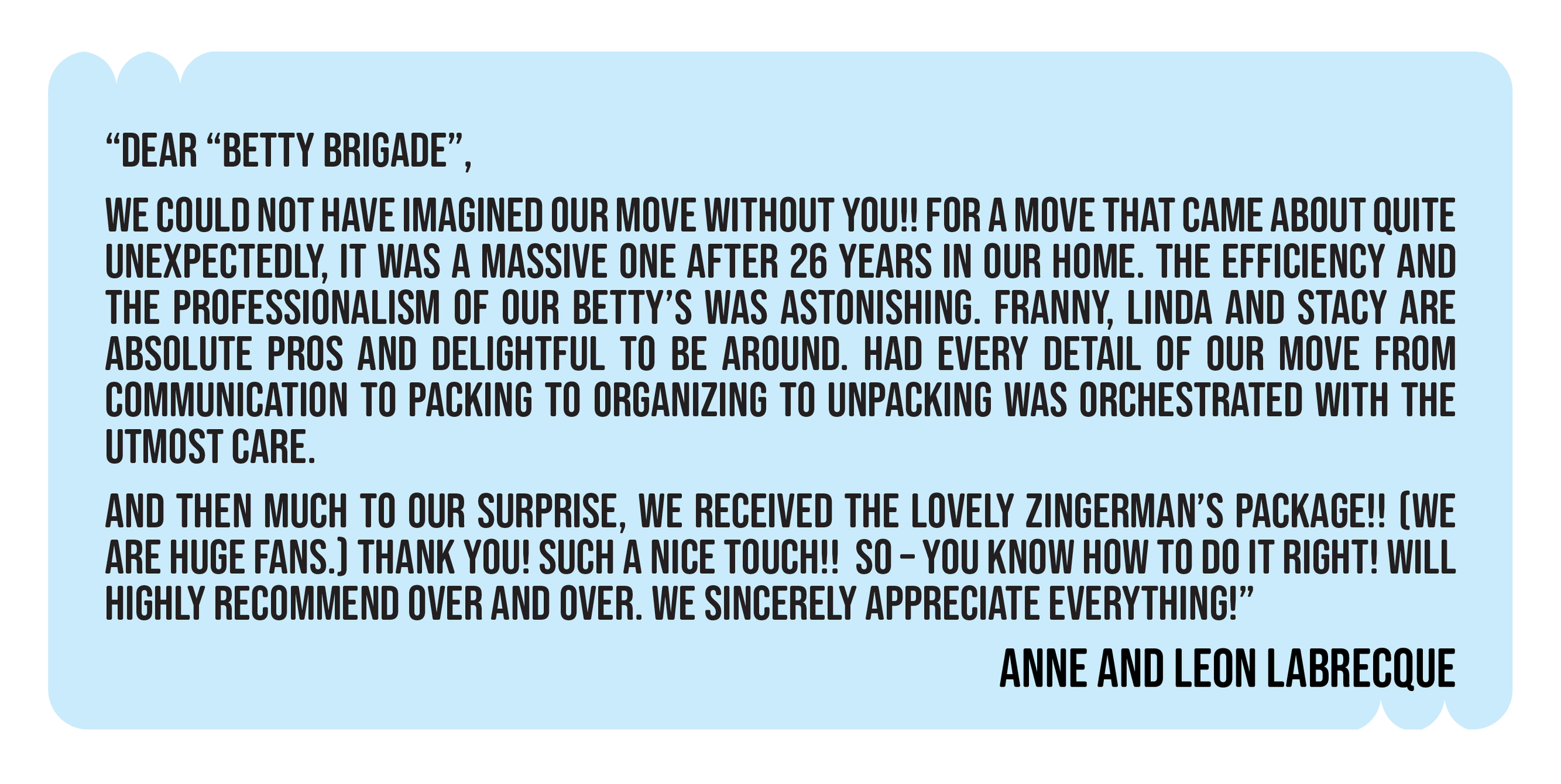 One call to The Betty Brigade does it all.